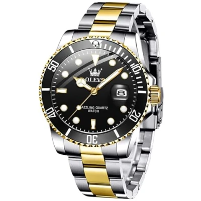 DESIGN:Mens Black Watch, Gold Silver Stainless Steel Mens Watch,Unidirectional Rotating Bezel,Luminous Hands/Markers and Enlarged Date Window at 3 o'clock, Stylish Watch with Roman Scale Bezel, Water Resistance Up to 30 m (100 Ft): Usually, Suitable for Swimming, But not Suitable for Deep Diving ( Note:Do Not Press Any Buttons Under Water) FEATURE:Olevs Watch for Men, Black Mens Watch,Mens Analog Watches,Watch for Men Waterproof, Mens Waterproof Watch, Silver Watch for Men, Big Large Face Luxury Date Calendar Display Watch Window. Easy to Read, Classic Business Style,Casual Dress Watch,Silver Stainless Steel Men Watch Quartz Movement,Scratch-resistant.Black Face Men Watch Thick 11 mm(0.43 inches),Diameter 41 mm(1.6 inches) ,Steel Band Width 20 mm(0.78 inches),Length 22 cm(8.66 inches).Dress Men's Watch Weight 118 g(4.16 ounces) FUNCTION:Perfect For Almost Any Occasion, Outdoors, Parties And Business Meetings. Best For Father, Husband, Son, Brother, Boyfriend, Friend And More. Perfect For Valentine'S Day,Anniversaries, Birthdays, Father'S Day, Christmas And Other Events.Day,Christmas,Thanksgiving,Birthday,Anniversary And Other Occasion. USE TIPS:When Using the Night Light Function for the First time, Illuminate the Watch for 30 Seconds Under the Light or Adsorb the Sunshine to Activate the Light Function(Bangle Adjustable)-The Watch strap can be removed and adjusted by the watch adjustment tool in the package box. OLEVS WATCH MEN:If You Have Problems During Use of The Wristwatch, Please Don'T Hesitate To Contact Seller. If The Strap Is Too Short, Please Contact Seller To Get A Longer Strap(Mens Black Watch,Black Mens Watch,Watch for Men Black,Black Watch for Men,Silver Watch Men,Silver Mens Watch)