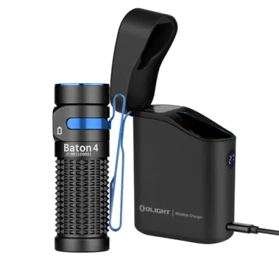 OLIGHT Baton 4 Premium EDC Flashlight 1300 Lumens Power Wireless Charger Included 190 Day Battery Life (Black)