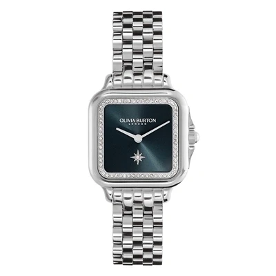 Olivia Burton Silver Square Blue Sunray Dial Watch