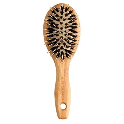 Eco-conscious Bamboo (FSC certificated) Strong, light and durable material. Good moisture resistance Mix of boar and nylon bristles. Boar bristles spread natural oil in the hair Ionic and Anti-static. Restore hair balance, leaving a shiny hair.
