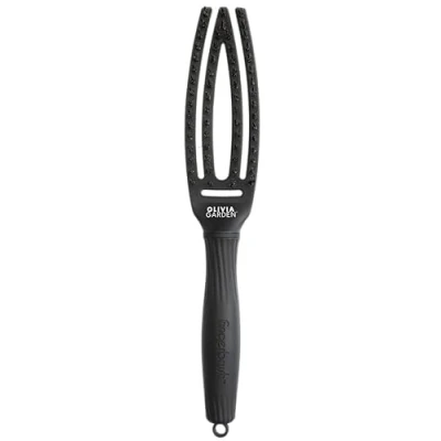 Olivia Garden Iconic Care Fingerbrush with Boar Bristles & Nylon, Total Black, Small