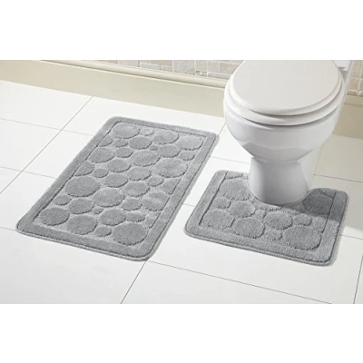 Olivia Rocco Cali Bubbles 2pc Bath & Pedestal Mat Sets Non Slip Water Absorbent Bathroom Rugs (Silver)