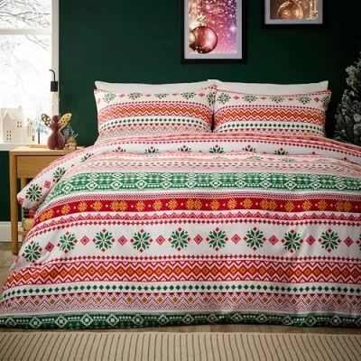 Olivia Rocco Christmas Duvet Cover Set Festive Bedding Quilt Xmas with Pillowcases Reversible Design Easy Care Bed Linen Sets, Fair Isle Multi, Double