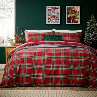 Olivia Rocco: We feel that everyone should have the home that they love. We believe in offering designer-quality products at affordable prices that represent exceptional value for money. Our products are produced to be elegant and timeless. Christmas Bedding Set: Celebrate the season with Olivia Rocco Christmas duvet covers, perfect for festive bedroom makeovers. Choose from 10 vibrant designs including St Moritz Green, Candy Cane Red, Fair Isle Multi, Wonderland Gold, Gingerbread Xmas, Festive Fun, Candy Cane Sweets, Zermatt Red, Xmas Highland Cow, Paw Party Red. Available Sizes: This Christmas duvet cover set comes in UK Single, Double, and King sizes. Each set includes a duvet cover and matching pillowcase, ideal for winter bedding in children’s rooms, guest rooms, or master bedrooms. Material & Comfort: Crafted from 100% polyester microfibre, this Christmas bedding set offers a soft, smooth texture and lasting durability. Lightweight and cosy, it's perfect for keeping warm and comfortable throughout the festive season. Easy Wash Care: These festive duvet sets are machine washable, quick drying, and require minimal ironing. Designed to retain colour and quality after multiple washes, they offer both holiday charm and everyday practicality for your home.