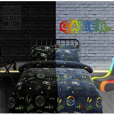 Olivia Rocco Glow In The Dark Teddy Fleece Duvet Cover Sets Soft Warm Kids Bedding Childrens Quilt Covers Set, Gamer Double