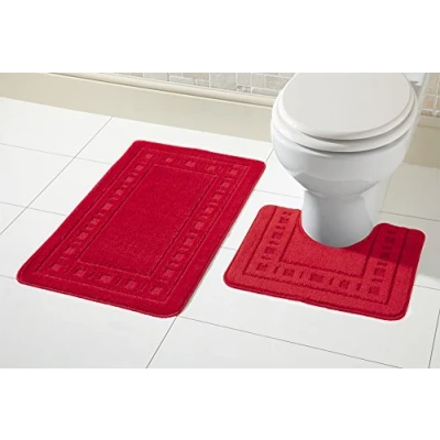 Olivia Rocco Miami 2 Piece Bath Mat & Pedestal Set, Non Slip Bathroom Set (Red)