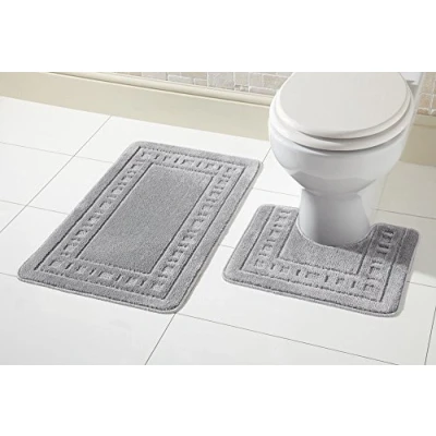 Olivia Rocco Miami Luxury 2pc Bath & Pedestal Mat Sets Non Slip Water Absorbent Bathroom Rugs (Silver)