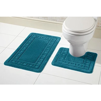 Olivia Rocco Miami Luxury 2pc Bath & Pedestal Mat Sets Non Slip Water Absorbent Bathroom Rugs (Teal)