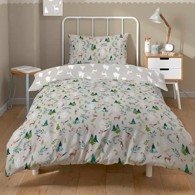OLIVIA ROCCO: We feel that everyone should have the home that they love. We believe in offering designer-quality products at affordable prices that represent exceptional value for money. Our products are produced to be elegant and timeless. Festive and Stylish Design: Transform your bedroom with our Snowy Reindeers Printed Duvet Cover Set, featuring a charming winter wonderland design that brings a touch of festive cheer and modern elegance to your decor. Ultra Soft and Comfortable: Enjoy a luxurious sleep experience with our duvet cover set crafted from 50% polyester and 50% cotton. The ultra-soft and anti-allergic fabric ensures maximum comfort, making it perfect for a cosy and restful night's sleep. Complete Bedding Set: Available in Single, Double, and King sizes, our set includes matching pillowcases to provide a coordinated look. The high-quality construction ensures durability and long-lasting use. Easy Care and Maintenance: Our duvet cover set is designed for convenience. It is machine washable and retains its softness and vibrant print after multiple washes, making it ideal for busy households.