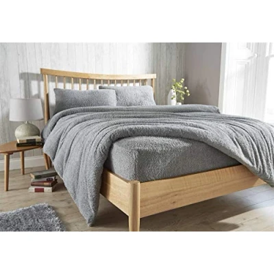 Olivia Rocco Teddy Fleece Extra Deep Fitted Sheet Cosy Warm Fluffy Bed Sheets, Super King Grey
