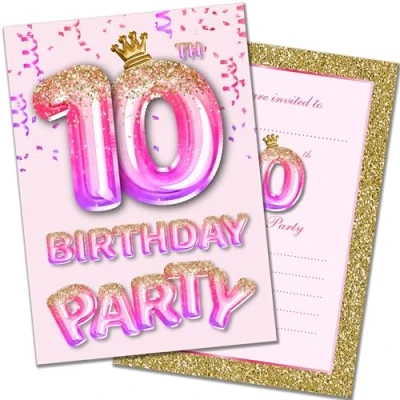 Olivia Samuel 20 Pack of 10th Birthday Invitations with Envelopes Pink and Gold Glitter Effect Ready to Write Designed Printed in the UK