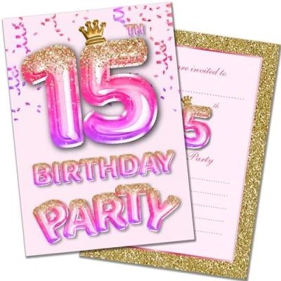 Olivia Samuel 20 Pack of 15th Birthday Invitations with Envelopes Pink and Gold Glitter Effect Ready to Write Designed Printed in the UK
