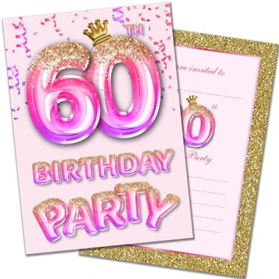 Olivia Samuel 20 Pack of 60th Birthday Invitations with Envelopes Pink and Gold Glitter Effect Ready to Write Designed Printed in the UK