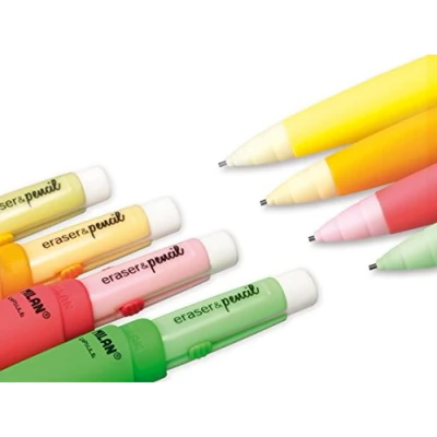Eraser & pencil Capsule FLUO, MILAN extra-long rubber with cap, rubberized body 1.3 mm 2B lead for easy writing Refill rubbers and leads available 4 fluorescent colours: orange, red, green and yellow