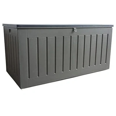 𝐄𝐅𝐅𝐈𝐂𝐈𝐄𝐍𝐓 𝐒𝐓𝐎𝐑𝐀𝐆𝐄 𝐂𝐀𝐏𝐀𝐂𝐈𝐓𝐘: With a spacious 830-litre capacity, this outdoor storage box can store your garden cushions, furniture, tools, toys and more! This helps keep your garden organised, neat and tidy. It also includes a removable divider so you can keep different types of items separate. External Dimensions: L160 x W78 x H76 cm, Internal Dimensions: L154 x W74 x H73.5 cm. Max storage weight: 45kg. 𝐒𝐄𝐂𝐔𝐑𝐄𝐃 𝐒𝐓𝐎𝐑𝐀𝐆𝐄 𝐁𝐎𝐗: The garden tool storage box comes with a supplied combination padlock which helps in providing an added layer of security for your stored items. This feature ensures that your garden accessories are safe from theft and unauthorised access. 𝐃𝐔𝐑𝐀𝐁𝐋𝐄 𝐀𝐍𝐃 𝐖𝐄𝐀𝐓𝐇𝐄𝐑 𝐑𝐄𝐒𝐈𝐒𝐓𝐀𝐍𝐓: This large storage cabinet box is made from high-quality plastic to ensure durablity. It designed to be weather resistant, protecting your items from rain, snow, and harsh sunlight making it the ideal outdoor cushion storage solution. 𝐒𝐓𝐘𝐋𝐈𝐒𝐇 𝐀𝐍𝐃 𝐅𝐔𝐍𝐂𝐓𝐈𝐎𝐍𝐀𝐋: This outside storage box features an elegant wood effect that enhances the look of your garden. It features two gas-assisted lifting hinges to make opening and closing easier. Additionally, it can be used as an outdoor storage bench for seating two people on the top (max weight 100kg per side). 𝐄𝐀𝐒𝐘 𝐓𝐎 𝐌𝐎𝐕𝐄 𝐀𝐍𝐃 𝐀𝐒𝐒𝐄𝐌𝐁𝐋𝐄: This garden tool organiser is lightweight at 16.5 kg, making it easy to move around your garden or patio. It arrives flat-packed with simple instructions for quick and easy assembly.