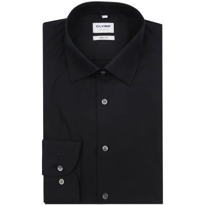 Olymp Level Five Shirt Body-Fit Black Olymp Level Five Shirt Body-Fit Black in de kleur Black met een pasvorm Slim-Fit is gemaakt van Cotton en Stretch met een Plain dessin met Standard en Long sleeves.
