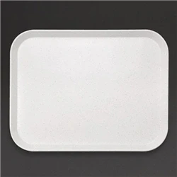 LIGHTWEIGHT AND EASY TO CARRY: The fibreglass construction makes the tray lighter than plastic, ensuring comfort when carrying heavy loads. DURABLE FIBREGLASS BUILD: Resists flexing under weight, offering strong, long-lasting performance for everyday use in high-volume environments. STACKABLE DESIGN: Easy to store and save space by stacking multiple trays together. GRANITE EFFECT: The sleek grey color with granite speckles adds a modern, professional look to dining spaces. EASY TO CLEAN: The smooth surface allows for quick and efficient wiping, maintaining hygiene in fast-paced settings.