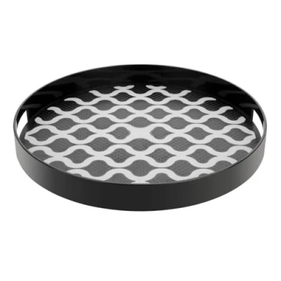 Euroffice355(Ø)x42(H)mm. Polycarbonate. Patterned. Non-slip surface prevents spills. Lightweight polycarbonate body. Cut-out handles for easy carrying. Wipeable for an easy clean. Dishwasher safe. Shatter resistant alternative to glass.