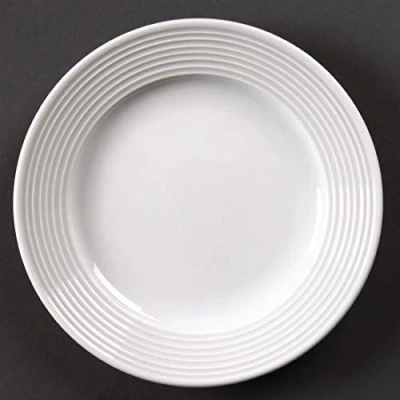 Olympia Linear Wide Rimmed Service Plates 150mm Porcelain White 12pc