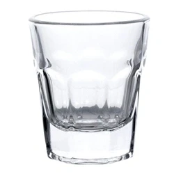 55(H) x 48(Ø)mm. Glass. Clear. Panelled design provides a classic look. Designed to be filled to the brim for consistent servings. Glasswasher safe for quick and easy cleaning. This product is not CE marked.