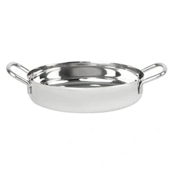 Durable stainless steel material ensures a long life Lightweight design enables easy balancing and carrying Wide, raised rim stops food or drink from falling off Comes in various sizes for different portions Stainless steel retains heat