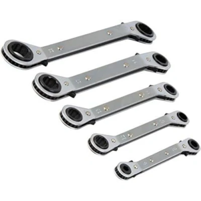 Nickel plated finish Reverse ratchet carbon steel ring heads Offset heads make access easier for close in flat surfaces, Manufacturer: Olympia