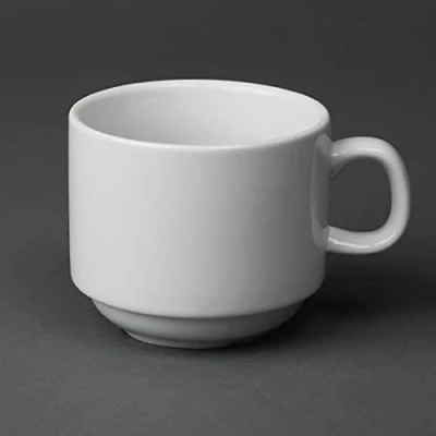 Strengthened rolled edges give these cups great chip resistance, The large handle ensures comfortable use for guests Strengthened rolled edges give these cups great chip resistance, The large handle ensures comfortable use for guests Strengthened rolled edges give these cups great chip resistance, The large handle ensures comfortable use for guests Stackable design helps to save you vital storage space, Fully vitrified for heat and shock resistance The cups fit the matching CB468 Olympia Whiteware saucers (sold separately), Oven, microwave, dishwasher and freezer proof for varied uses in commercial kitchens Ideal for cafes, hotels, buffets and functions Nisbets Edge Chip Warranty protected