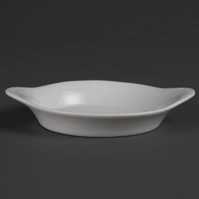 Eurofficeincluding ears 156(W) x 126(D)mm. Porcelain. White. Great value pure white porcelain hotelware. Heat and shock resistant. Dimensions excluding ears 98(W) x 98(D)mm. Meets the Vitrified Hotelware Standard BS4034. Shape: Round.
