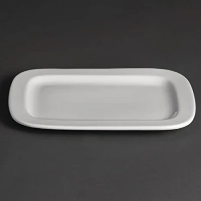 Colour: White, Great value pure white porcelain hotelware Colour: White, Great value pure white porcelain hotelware Colour: White, Great value pure white porcelain hotelware Fully vitrified for heat and shock resistance Shape: Rounded rectangle Oven, dishwasher and freezer proof