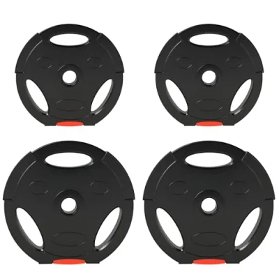 AmazonComplete weight set: Comes with two 10kg and two 5kg plates – great for mixing up your training, with or without a barbell. Standard fit: Each plate has a 2.5cm centre hole, compatible with most standard barbells for easy setup. Thick cover: Solid polypropylene helps shield floors from damage during drops. Three built-on grip holes: Makes you able to use the plates solo, suitable for exercises like shrugs, twists and more. Dimensions: Φ34 x 6cm and Φ27 x 4.5cm. No assembly required.