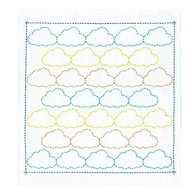 Olympus Thread Sashiko Hana Fukin Pop Designs Clouds Fabric Printed Embroidery Kit, Multi Colour