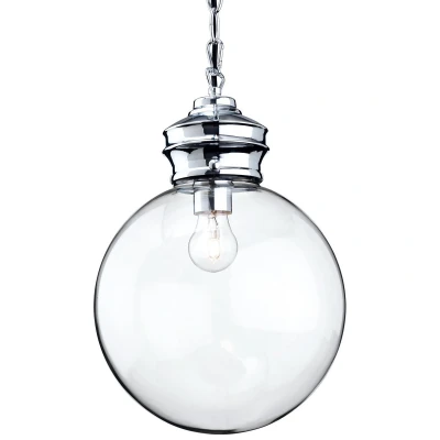 Omar 1 Light Globe Ceiling Pendant Chrome, Clear Glass, E27