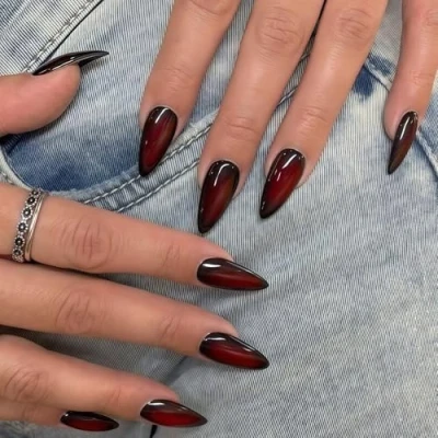 Ombre French Press on Nails Almond, SXVME False Medium Stiletto, Blush Red Full Cover Black Fake Set, Goth on, Acrylic Stick Nail for Wome, 24 Pcs