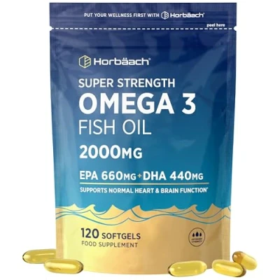 Omega 3 Fish Oil 2000mg 120 Softgels Natural Source of High Strength Supplement Providing 660mg EPA and 440mg DHA by Horbaach