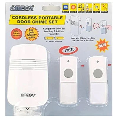 Flashing LED Door Chime 1 chime with 2 button Operates upto 75 M under ideal conditions without interference Sound output upto 85 decibel New code selection button, Manufacturer: Omega