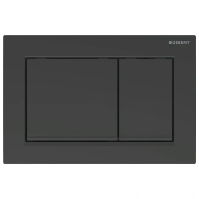 National Shower SparesGeberit Omega30 Dual Flush Plate - Matt Black (115.080.16.1). Matt Black plate with black trims. For flush actuation with Omega concealed cisterns Sound-absorbing actuator rods, tool-free fast adjustment Genuine brand new Geberit product, covered by a Geberit manufacturer's guarantee.