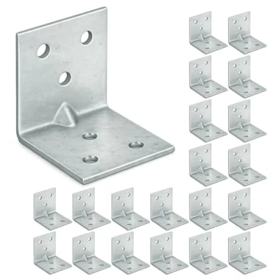 📐 PACKAGE CONTENTS: 20 x Angle brackets; SIZE: 30 x 30 x 30 mm, THICKNESS: 1.5 mm; HOLES: 6 x Ø 5mm. Screws are not included. ✅QUALITY MATERIAL: The galvanized angle braclets are made of high-quality 1.5 mm thick galvanised steel sheet and enable a robust and long-lasting connection. Its structure provides strength and corrosion resistance, making it an excellent choice for both indoor and outdoor applications. 🦾 ROBUST & DURABLE: Angle brackets with ribbed or reinforced designs offer enhanced strength and durability compared to plain or flat brackets. This makes them suitable for applications where significant weight or stress needs to be supported. 🛠️ EASY INSTALLATION: The pre-drilled holes on the bracket facilitate easy and secure fastening, using screws or bolts. 🏚️ VERSATILE APPLICATION: Ribbed angle brackets are used in a wide range of construction and engineering projects. Some common applications include attaching joists to beams, reinforcing corners of buildings, connecting wooden or metal framing members, supporting shelves.