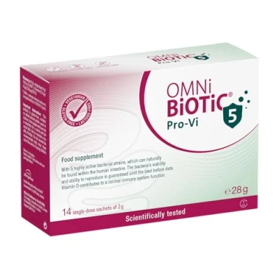 OMNi-BiOTiC Pro-Vi 5 – When the body's defences are challenged Probiotic Powder: 5 key bacteria + Vitamin D for your immune system Combined with vitamin D which plays an important role in maintaing the normal function of our immune system Use: Stir 1 sachet of OMNi BiOTiC Pro-Vi 5 into approx. 1/8 l of water 1-2 times daily, wait at least 1 minute activation time, stir again and then drink Free from animal protein, gluten, yeast and lactose. Suitable for diabetics, people allergic to milk, and children. This product is also safe for use during pregnancy and while breastfeeding.