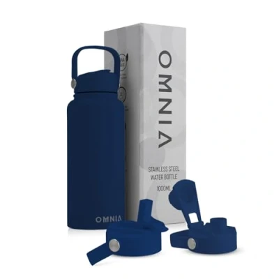OMNIA Vacuum Insulated Stainless Steel Water Bottle, 2 Lids (Straw & Spout) Leakproof, BPA Free, Reusable Flask, Hot Cold Thermos for Sports, Gym, Travel, Outdoors Slate Blue, 1000ML