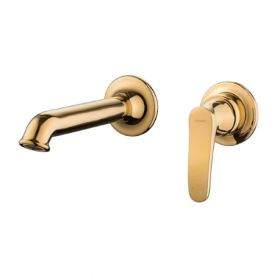 The collection delights with charming, stylized details as well as sophistication and precision of workmanship. The tap is made of high-quality brass and equipped with the highest quality ceramic head. Innovative technological solutions allow you to reduce water consumption by half and ensure the highest comfort of use. Rosette size: ø6 cm. Range of the spout: 16 cm. Minimum installation depth: 6 cm. Flush-mounted element included. Color: gold., Weight: 3.2848877038 pounds, Manufacturer: Omnires