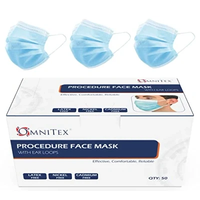 Omnitex Premium 3Ply dispsoable surgical face masks with Ear loops - British brand, British quality EN14683 Compliant - Type II standard with meltblown filter - at least 98% bacterial filtration Latex free, nickel free, cadmium free, fibreglass free 3Ply mask - three layers of medical specification Thickness, CE certified 1 box of 50