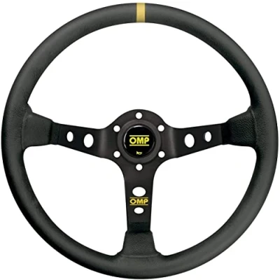 General: high-quality OMP steering wheel for more control during the ride; OMP sports steering wheel, which can also be used for simulators. This OMP handlebar is a bonus that makes your vehicle look more attractive; with center switch for horn Material and colour: OMP leather steering wheel and 3 spokes made of anodized aluminum for better grip; this provides more comfort and precision when driving; black OMP steering wheel, 3-arm black and yellow logo Dimension: Steering wheel 330 mm diameter, oval handle of 30 x 28 mm and 95 mm shift Installation: Original OMP steering wheel with universal fit, easy to install, but professional installation is recommended; this sports steering wheel requires an OMP steering wheel Article number: OMPOD/2012/NN