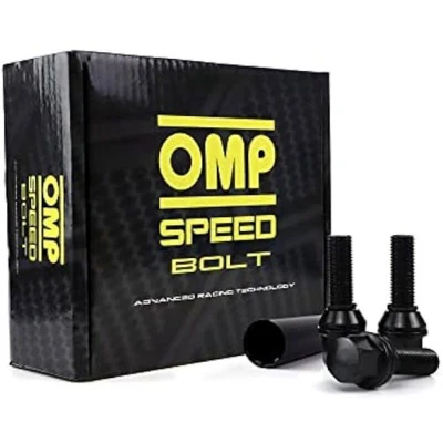OMP SPEED Set of 20 Wheel Screws with Metric M14 x 1.5 Wrench 17/19 Long Threaded 27 mm Black and Material DIN 10.9