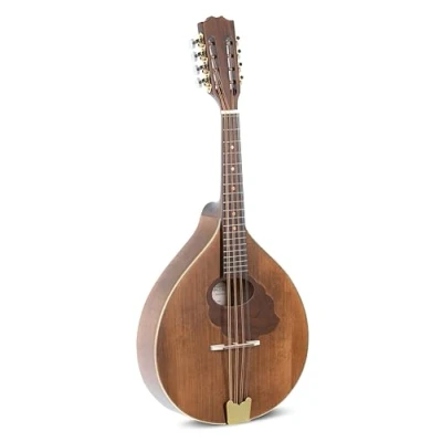 Flat mandola - Antique-model, Portuguese shape, All solid, solid spruce top, back and sides solid maple Maple neck, black hardwood fingerboard, 19 frets, Slotted headstock, Van Gent machine head with acrylic buttons Scale 402 mm, length 725 mm, max, top width 310 mm, Nut width 34 mm, maple bridge with hardwood surface, Antique matt finish, Made in Europe