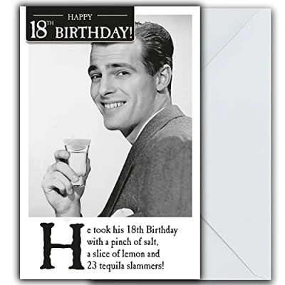 On The Ceiling Tequilla, 18th Birthday, Greetings Card, 159x235mm