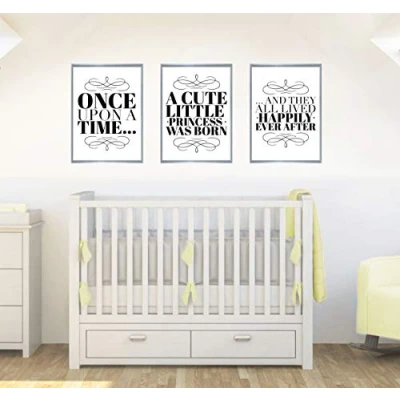 Once Upon A Time Set of 3 Quotes Baby Girls Nursery Decor Wall Art Poster Print Size A2 420 x 594 mm