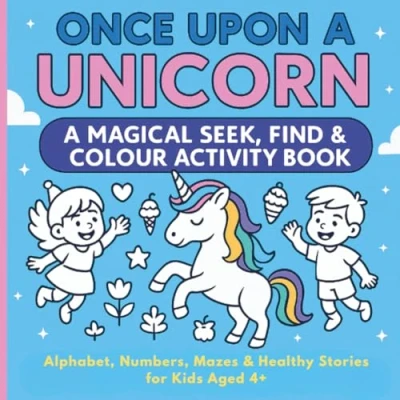Once Upon A Unicorn: Magical Seek, Find & Colour Activity Book: Alphabet, Numbers, Mazes Healthy Stories for kids aged 4+ (Once Colouring Book)