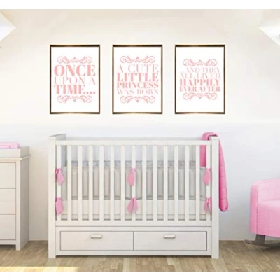 Once Upon Set of 3 Quotes Baby Girls Nursery Decor Wall Art Poster Print Pink Size A2 420 x 594 mm