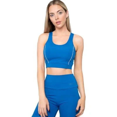 One Athletic Lorella Women's Med Impact Cropped Sports Bra, Medium, Blue