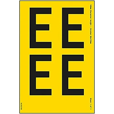 One Letter Sheet E 13mm Character Height 300x200mm Yellow Adhesive Vinyl